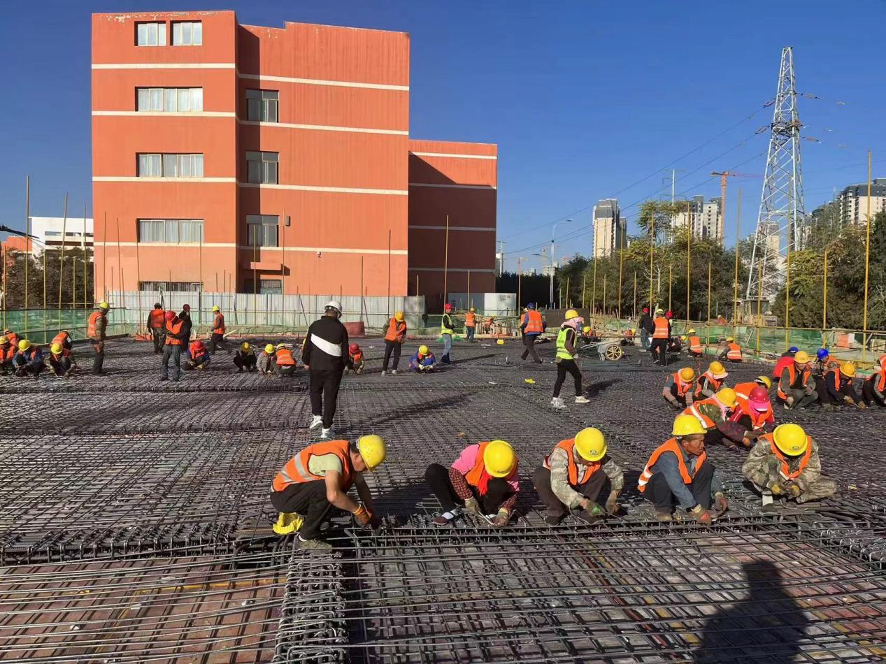 涼州區(qū)職業(yè)中等專(zhuān)業(yè)學(xué)校5號(hào)實(shí)訓(xùn)樓建設(shè)項(xiàng)目總面積9059.2平方米,計(jì)劃周期12個(gè)月,2024年7月交付使用。項(xiàng)目建設(shè)初期,由于施工場(chǎng)地內(nèi)高壓電塔遷改進(jìn)程緩慢,導(dǎo)致新建項(xiàng)目開(kāi)工較晚。為確保5號(hào)實(shí)訓(xùn)樓建設(shè)項(xiàng)目按期完工,項(xiàng)目部提前籌劃、科學(xué)安排,倒排工期,現(xiàn)場(chǎng)管理人員及施工人員加班加點(diǎn),趕進(jìn)度,把前期耽誤的時(shí)間搶回來(lái)。截至目前,5號(hào)實(shí)訓(xùn)樓建設(shè)項(xiàng)目已在一個(gè)月內(nèi)完成基礎(chǔ)與主體混凝土澆筑2800m3,構(gòu)造底板及剪力墻SBS防水卷材2500m2,使用鋼筋原材580噸,從構(gòu)造底板到主體三層結(jié)構(gòu)的施工任務(wù),為建設(shè)項(xiàng)目按期交付打下了堅(jiān)實(shí)基礎(chǔ)。
