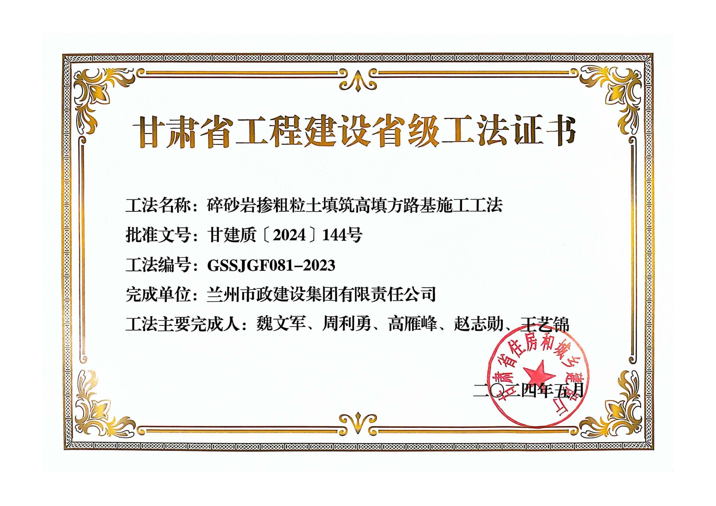 在蘭州經(jīng)濟(jì)技術(shù)開發(fā)區(qū)皋蘭生態(tài)修復(fù)與產(chǎn)業(yè)發(fā)展示范區(qū)(起步區(qū))S1502#路新建工程施工中,道路經(jīng)過帶狀區(qū)域,地形起伏變化較大,大部分段落為深挖、高填區(qū)域,最大填方寬度為180m,高度為46m,針對該工程地質(zhì)條件、地理環(huán)境、工程質(zhì)量要求高、填料特殊等特點(diǎn),公司結(jié)合實(shí)際情況,成立了高填方路基課題技術(shù)研發(fā)小組,通過反復(fù)試驗(yàn)總結(jié),為消除路基的不均勻沉降,形成了“碎砂巖摻粗粒土在高填方路基中的施工工法”,該工法獲甘肅省工程建設(shè)省級工法。
