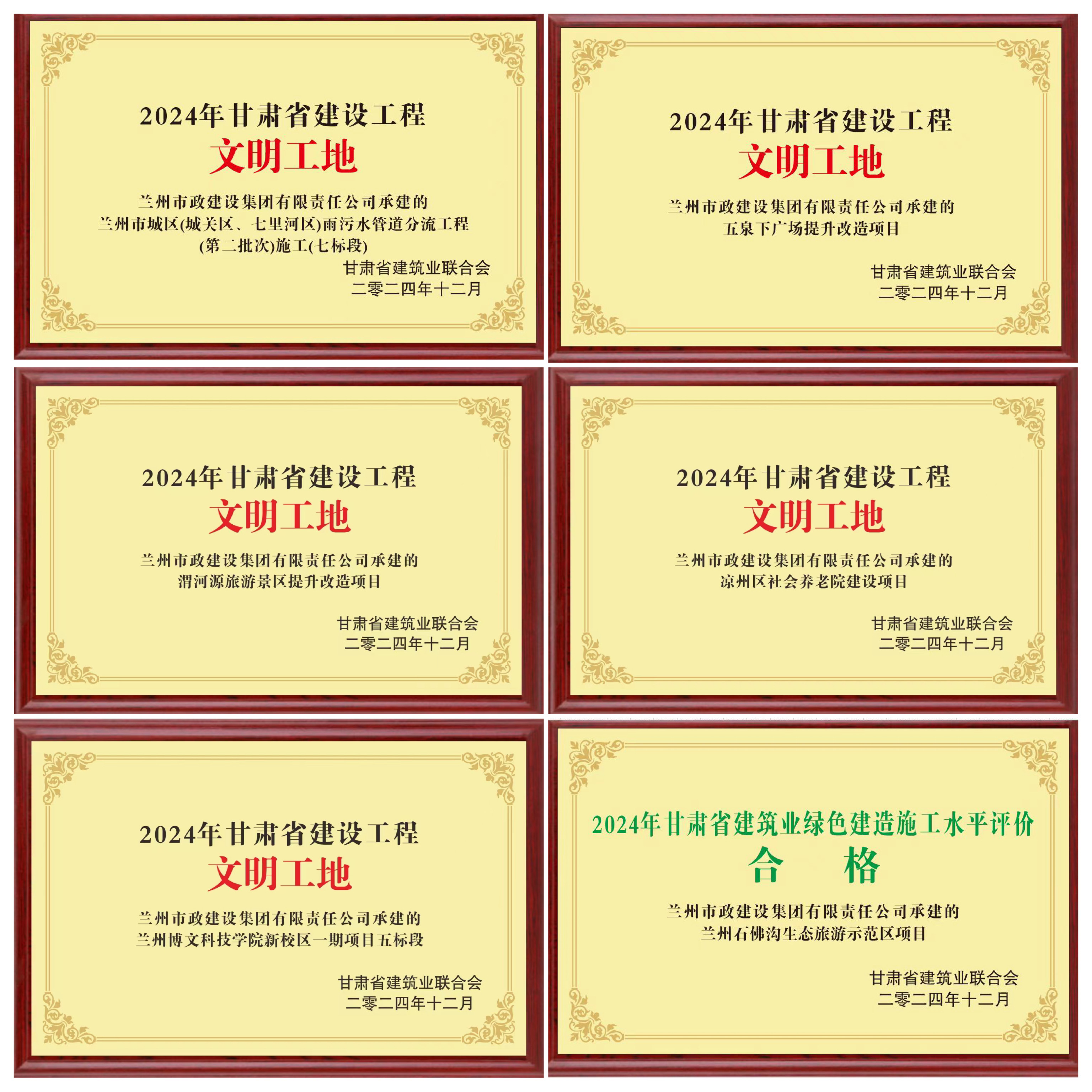 公司承建的涼州區(qū)社會養(yǎng)老院建設(shè)項目、蘭州博文科技學(xué)院新校區(qū)一期項目五標(biāo)段、蘭州市城區(qū)(城關(guān)區(qū)、七里河區(qū))雨污水管道分流工程(第二批次)施工(七標(biāo)段)、五泉下廣場提升改造項目、渭河源旅游景區(qū)提升改造項目獲評2024年“甘肅省建設(shè)工程文明工地”,蘭州石佛溝生態(tài)旅游示范區(qū)項目獲評“綠色建造施工水平評價合格項目”。